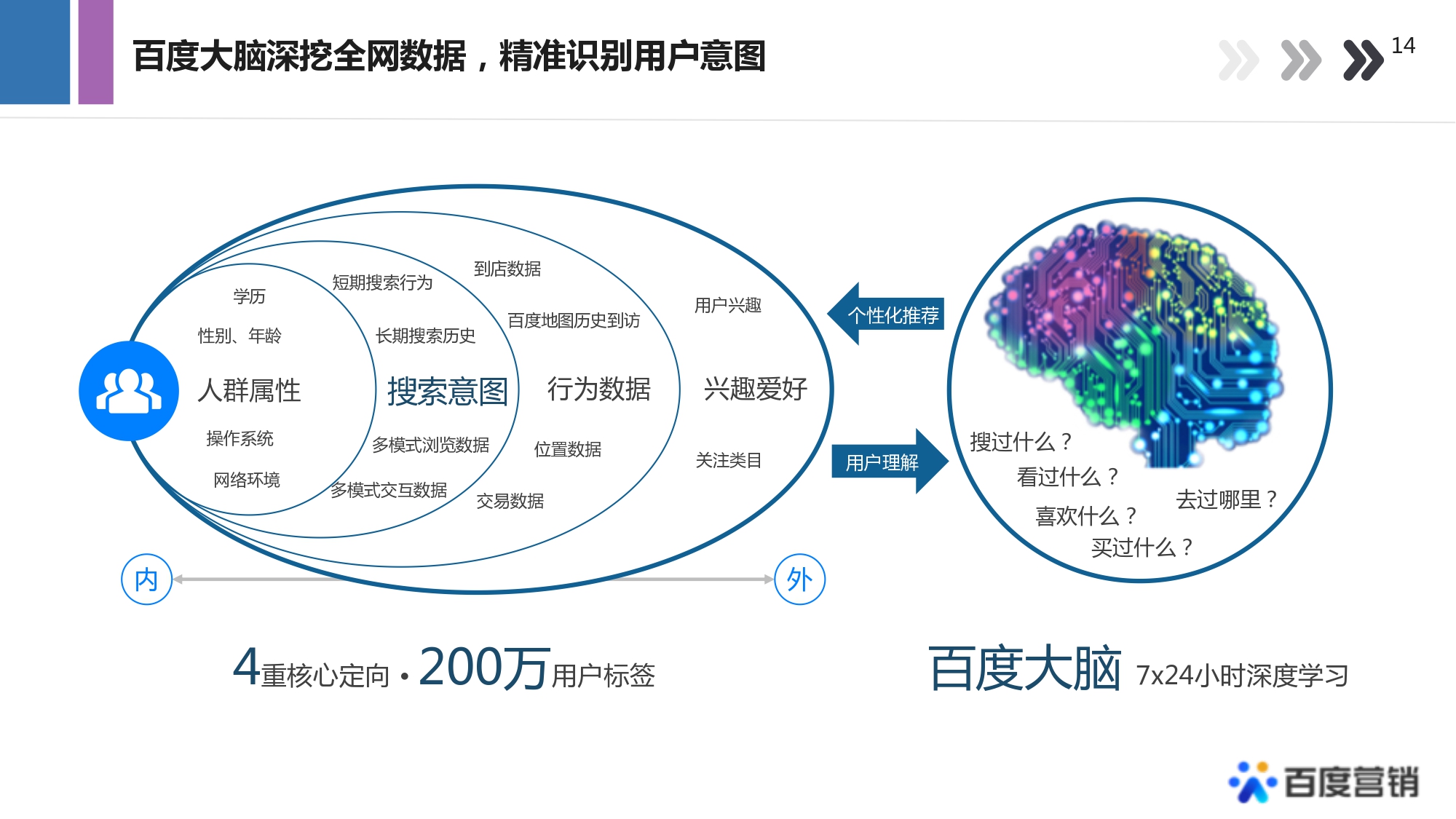 搜索推廣基于百度搜索引擎,用戶搜索關鍵詞,在百度搜索結果的顯著位置展示企業廣告信息,并幫助企業把用戶有效轉化為客戶的一種營銷方式。