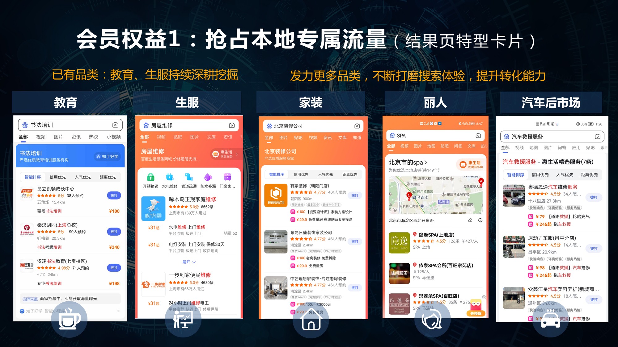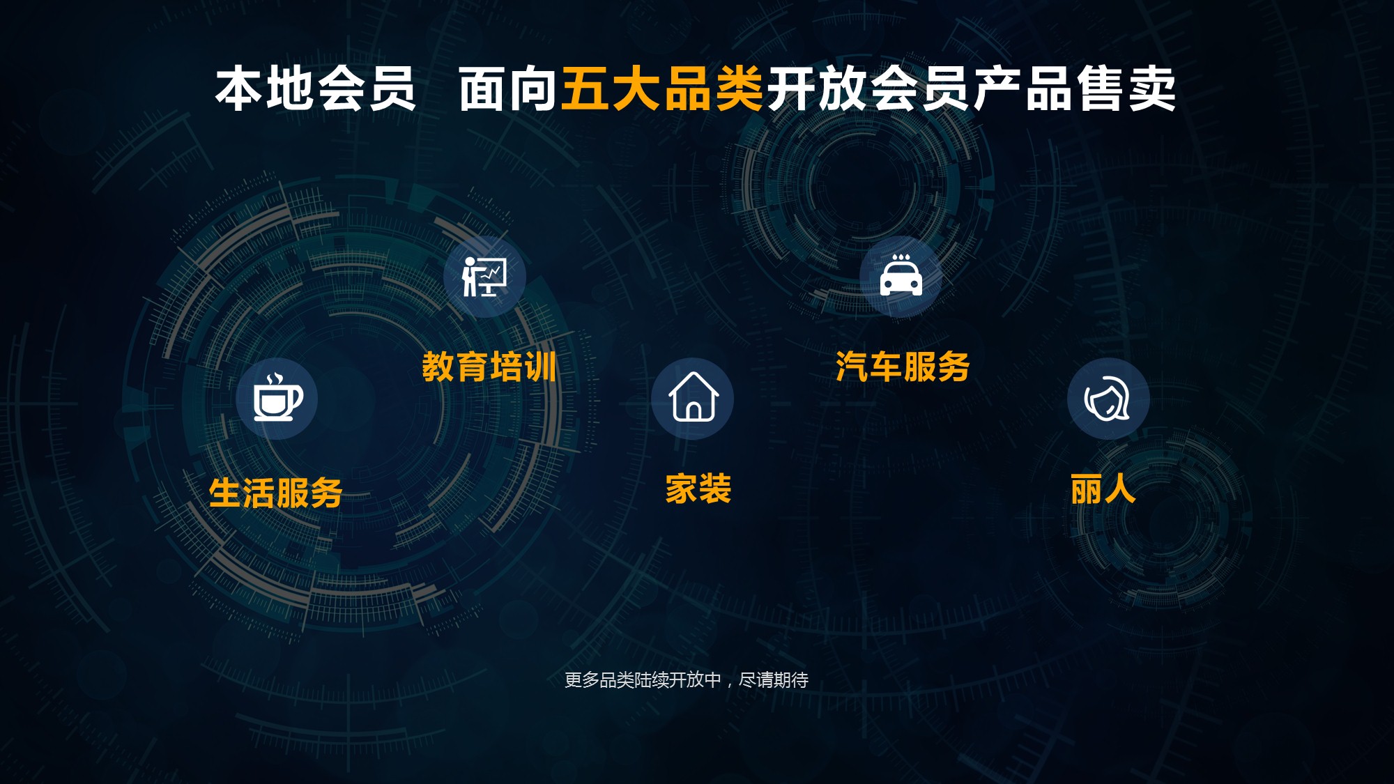 本地會員是面對中小商家的普惠型獲客解決方案,用海量專屬流量扶持本地商家成長,面向五大品類開放會員產(chǎn)品售賣,分別為:生活服務、教育培訓、房產(chǎn)家居、汽車服務和麗人。